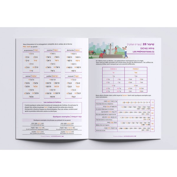 Ce livre de 50 leçons est conçu pour aider l'apprenant à maîtriser l'hébreu de manière autonome, en mettant l'accent sur la maîtrise des structures syntaxiques essentielles, du vocabulaire de la vie quotidienne et des expressions courantes. La conjugaison au passé est également abordée de manière approfondie, ainsi que la déclinaison des prépositions, indispensable pour construire des phrases correctes. Le livre est entièrement vocalisé, ce qui permet une meilleure compréhension des règles de grammaire et de leur utilisation à l'oral.